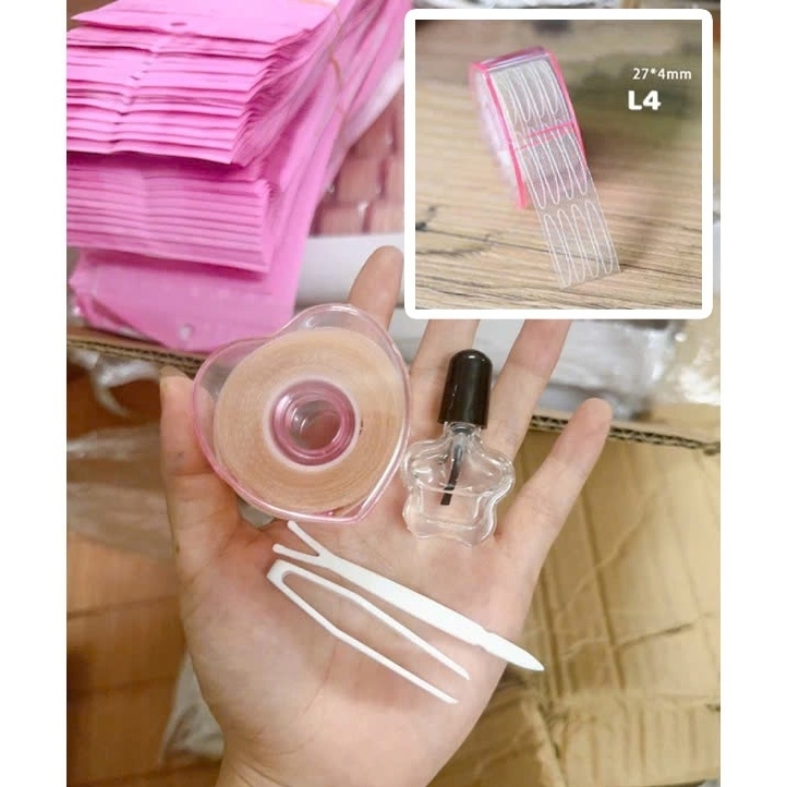 Kích mí hồng trái tim + keo + gắp - size L4 (nhỏ)
