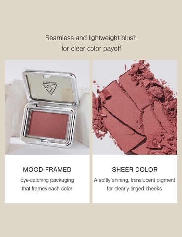 3CE là thương hiệu mỹ phẩm nổi tiếng với các sản phẩm trang điểm thời thượng, màu sắc trendy và dễ ứng dụng. Các dòng phấn má của hãng luôn được đánh giá cao về chất lượng và tính phối màu linh hoạt.